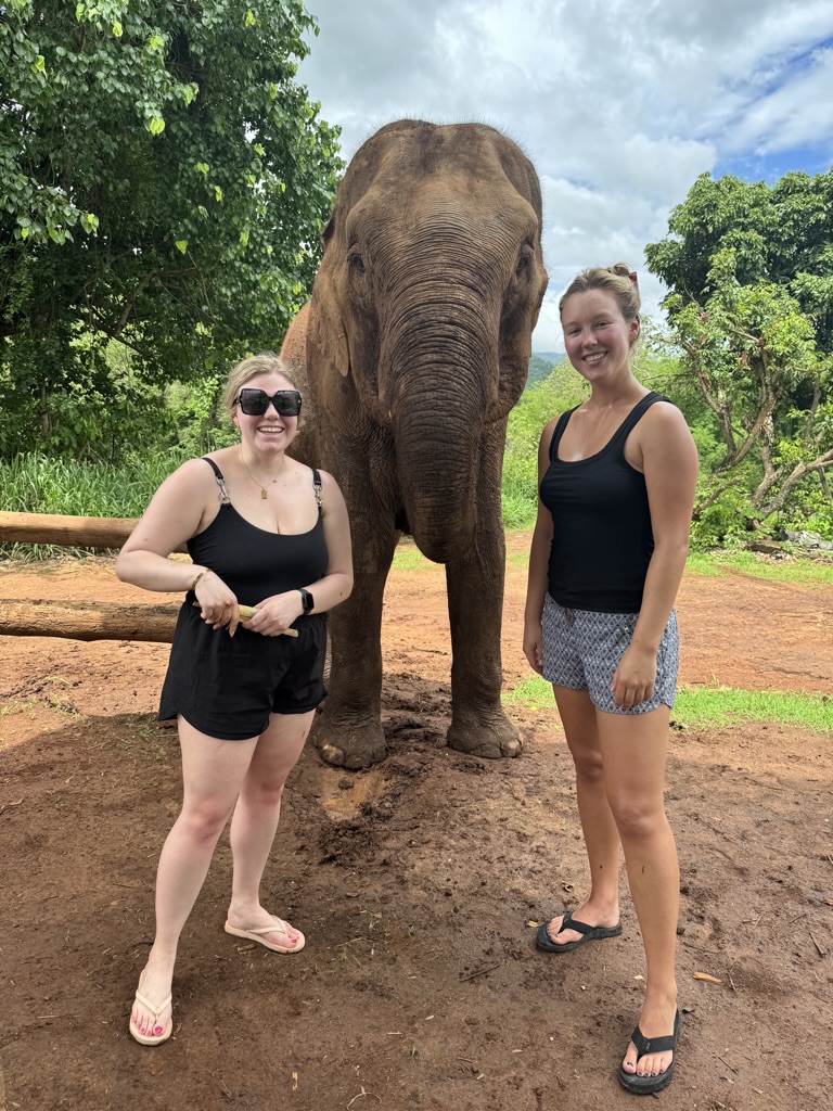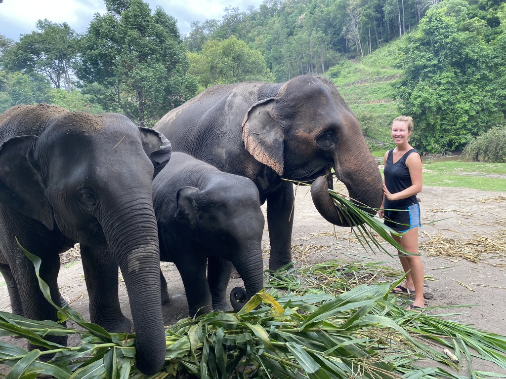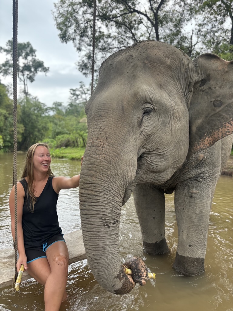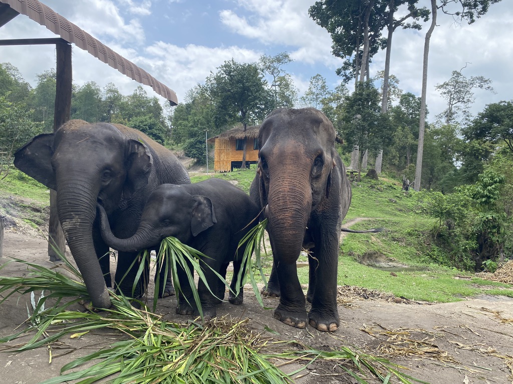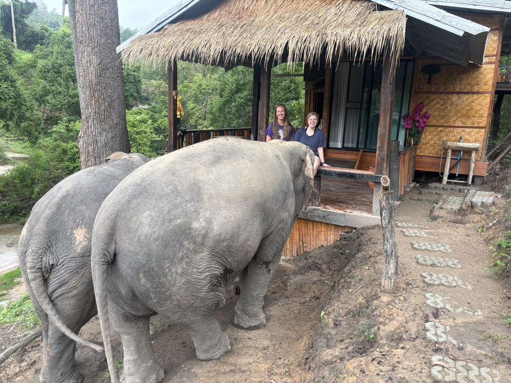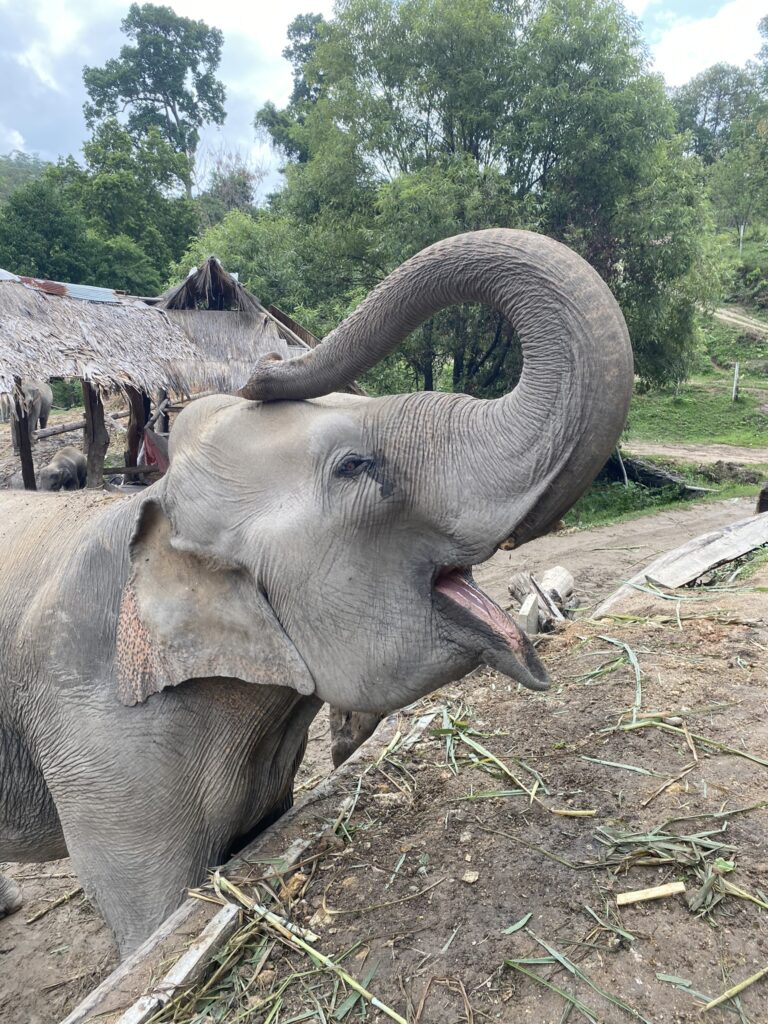 We have breakfast, then head to the river. Then we walk around the sanctuary meeting all the elephants. I lose count but there have to be at least 20 here of all different ages. We meet one that likes to blow raspberries on people’s cheeks. It’s cute but also weird because I’m sure they trained the elephant to do that. And I don’t know if that feels wrong or not.