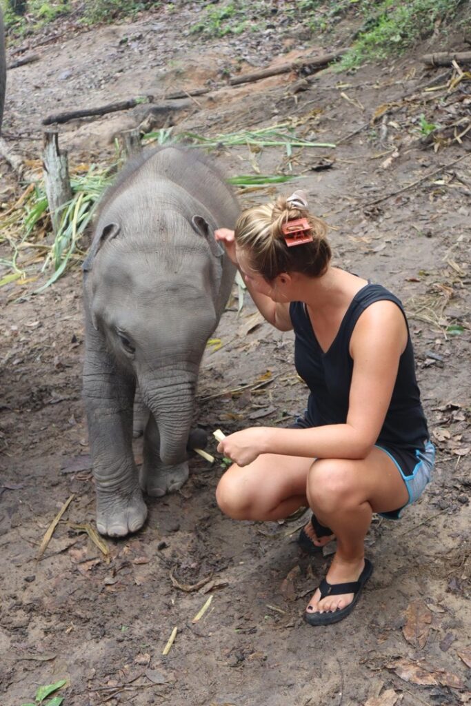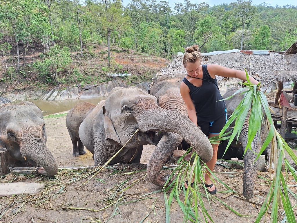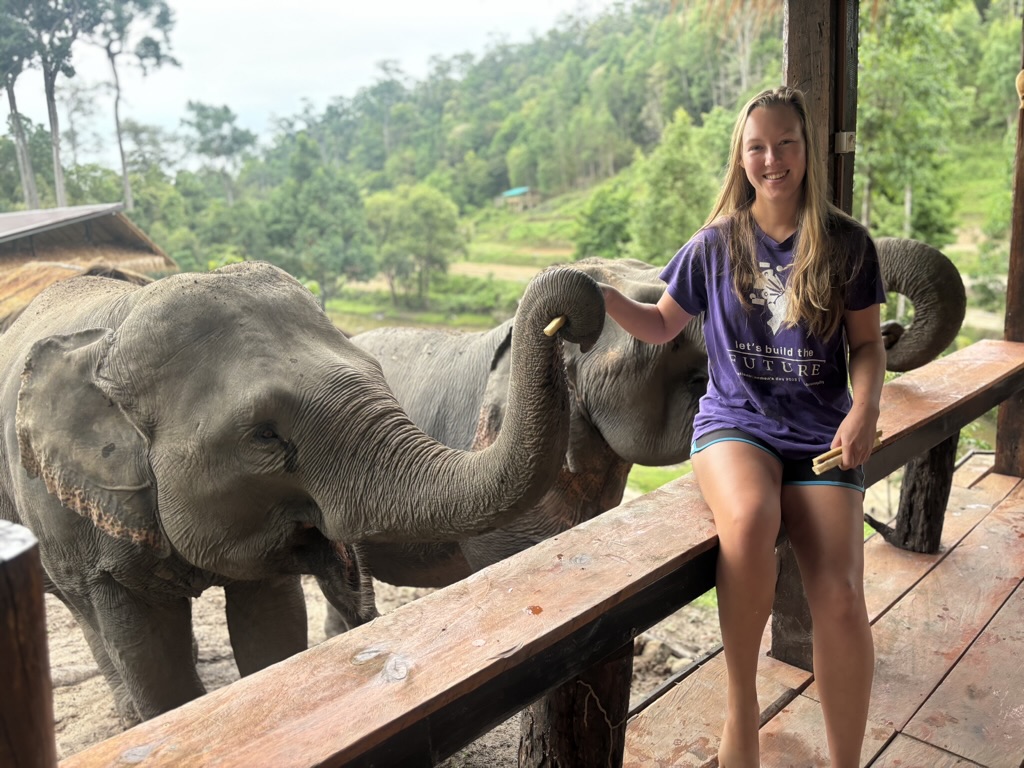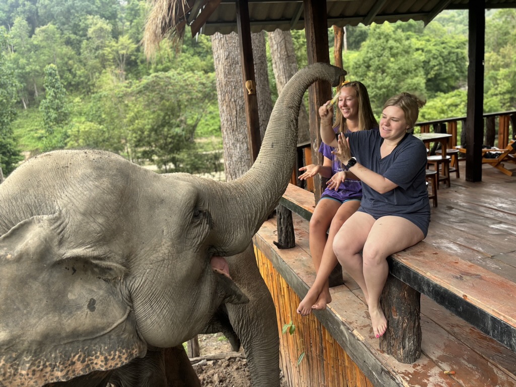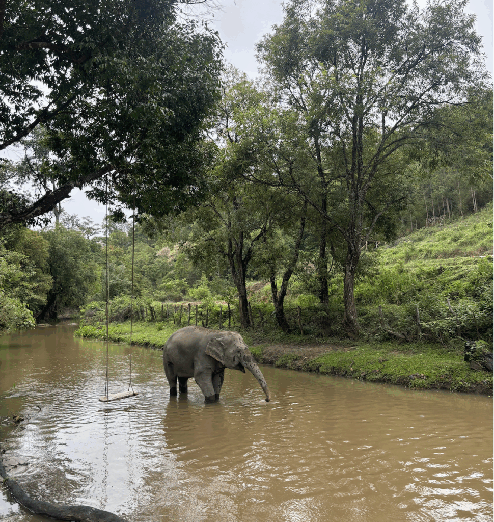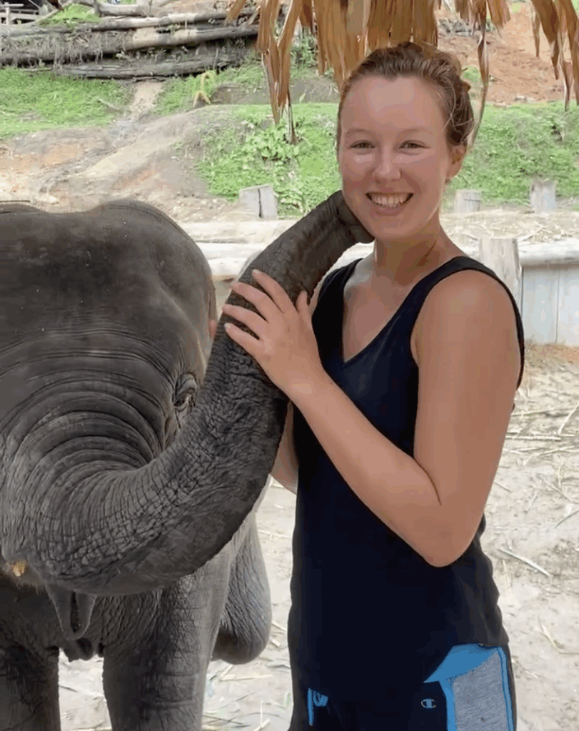 We have breakfast, then head to the river. Then we walk around the sanctuary meeting all the elephants. I lose count but there have to be at least 20 here of all different ages. We meet one that likes to blow raspberries on people’s cheeks. It’s cute but also weird because I’m sure they trained the elephant to do that. And I don’t know if that feels wrong or not.