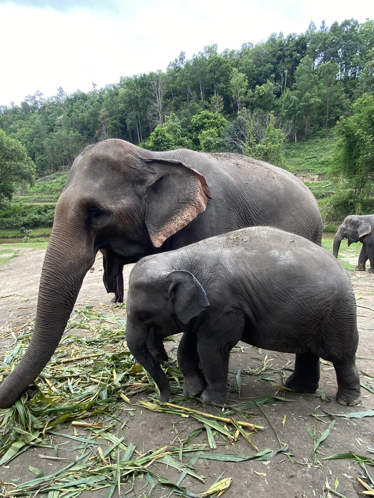 Chang takes my phone and captures the moments, which feels really touristy and also we’re in our pajamas….but there are elephants. Elephants! That’s all I can focus on.