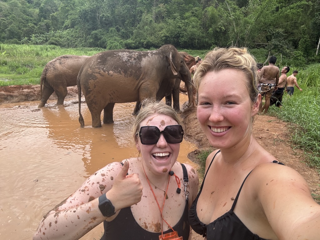 We jumped into mud pools with the elephants, getting just as covered in mud as they did. Then dipped into the river to wash, but I think the elephants did more to help us wash than we did for them!