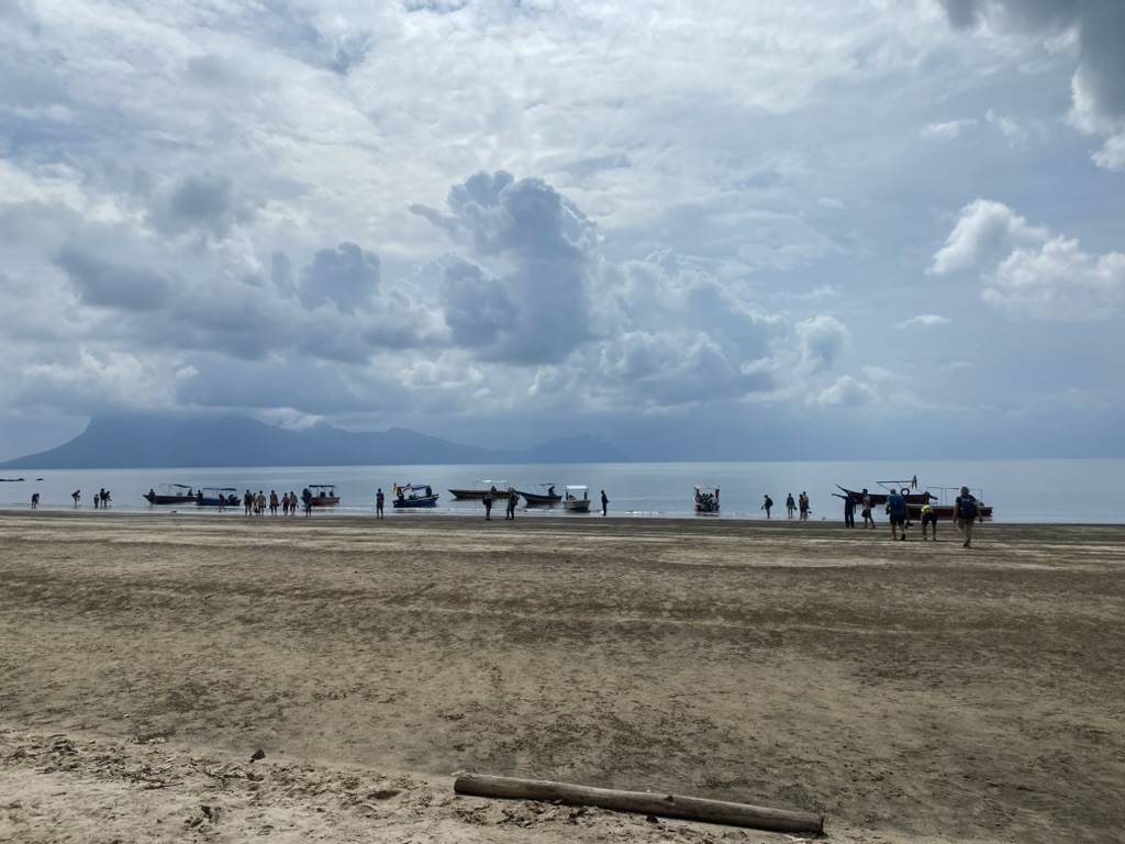 We have to take a boat to reach the park proper. Boats can carry five people and cost 200 ringgit. I know this in advance, of course, because I researched this process and came prepared (with cash, might I add). So I grab the first four people I see (a man in his 40s who is a professor, a young couple from Oz, and a German backpacker) and we make it onto the first little speed boat. We get our boat driver’s number because we have to go back with him at 3:00pm when the park closes.
