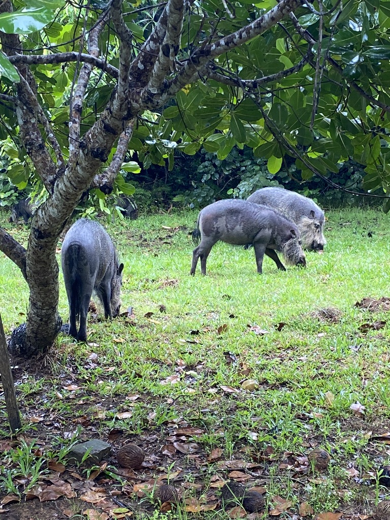 Three of us (the professor, the guy from Germany, and me) decide to team up and hike together. We set off along the trail and immediately turn the corner to see a group of Bornean bearded pigs. The wildlife viewing has begun!