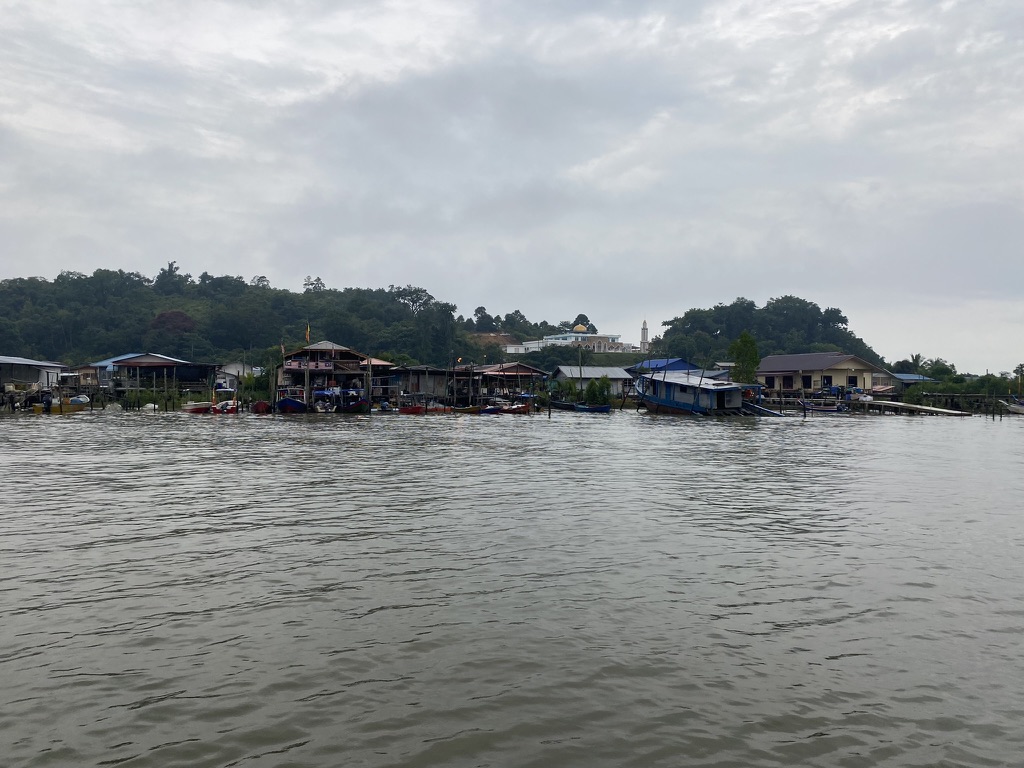 At 7, the bus pulls away, almost every seat full. We travel through the Sarawak countryside: structures sprawl everywhere. The bus stops on what seems to be a random street corner. There is a covered gazebo and lines of small shacks and tarps along one side of the road, and jungle on the other. Somehow, the herd of us visitors manage to figure out that we’re supposed to walk about five minutes down the road. There, we see a sign for Bako National Park Boat Terminal.