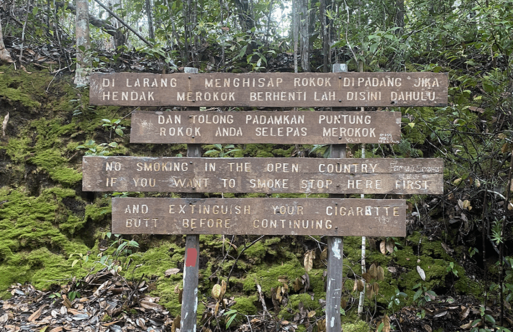 Next, I find a culturally interesting sign about smoking. It’s always fascinating to be reminded that nothing exists in a bubble and as much as Bako feels like a tiny world all it’s own, a slice of wildness sheltered from the sting of humanity, it is not. It is, in fact, part of Asia. Where people smoke. In the woods. Apparently.