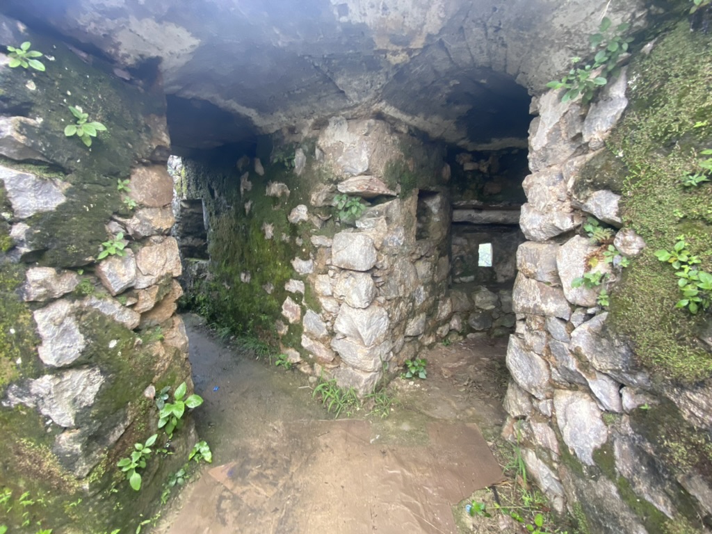 Walls and arches still stand, covered in moss. It’s idyllic and quiet. I’m the only one here and the noises of the town below are long left behind. I explore the structure and climb onto the observation deck for 360 degree views of the mountains and the town below. It’s gray and cloudy, everything hanging low to obscure the tops of the mountains, but as I continue to explore, the rising sun begins to lift the clouds.